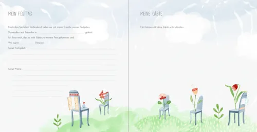 Klein aber fein bietet dieses perlmuttschimmernde Album genug Platz für Erinnerungen und ausgewählte Fotos vom großen Fest. Der Goldschnitt und die Folienveredelung auf dem Cover machen es edel. Die zauberhaften Illustrationen und die kurzen Texte und Gebete betten die Erinnerungen in einen kindgerechten, ansprechenden Rahmen.
