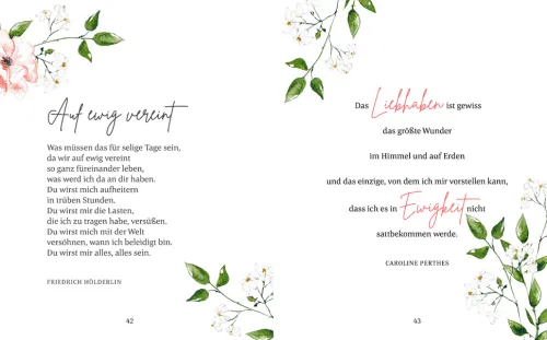 Ein wundervolles Geschenk für alle, denen wir zur Hochzeit das Beste wünschen. Eine Auswahl der schönsten Gedichte und Gedanken über das Glück zu zweit lädt dazu ein, den schönsten Tag im Leben und die Liebe in all ihren Facetten zu feiern. Berührend und inspirierend begleitet dieses liebevoll gestaltete Buch das Brautpaar auf seiner Reise in die gemeinsame Zukunft.