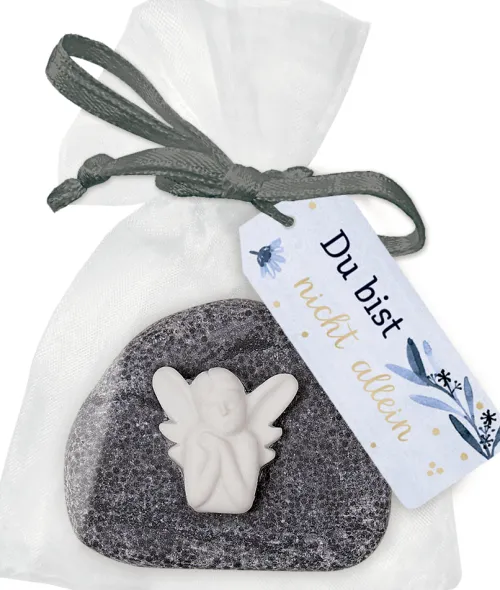 Wegbegleiter, Glücksbringer und Schutzengel – dieser Handschmeichler aus Naturstein mit Engelfigur ist ein kleines persönliches Geschenk und eine liebevolle Art zu sagen: Ich denke an dich. Du bist nicht allein.