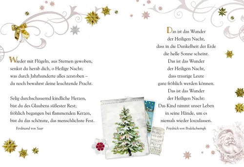 Die besten Wünsche zum Weihnachtsfest, stimmungsvolle Gedichte und Gedanken, eine Seite für eine kurze persönliche Widmung sowie nostalgische Illustrationen machen dieses Büchlein zur perfekten erweiterten Grußkarte. Als Beigabe zu einem Geschenk, zum Verschicken im Briefumschlag oder einfach so als Mitbringsel.