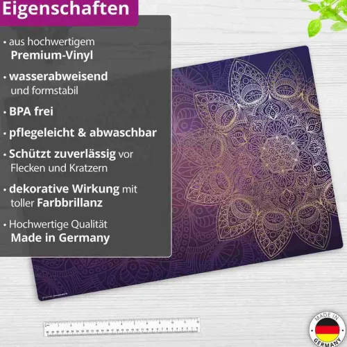 Cover-your-desk Schreibtischunterlagen-Schreibtischunterlage für Kinder und Erwachsene lila-goldenes Mandala, aus hochwertigem Vinyl, 60 x 40 cm