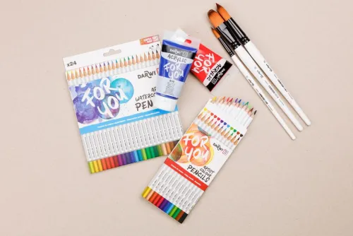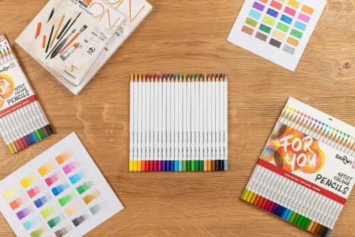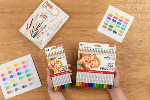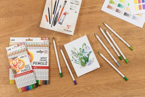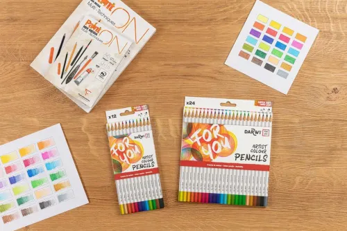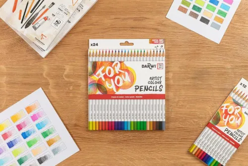 Darwi For You, Schachtel mit 24 Künstlerfarbstiften Standard Die Darwi For You-Künstlerfarbstifte bieten eine vielfältige Palette, um all Ihre Kreationen zu ermöglichen. Erhältlich als Standard-Künstlerfarbstift und als Aquarellfarbstift, jeweils in einer Packung mit 12 oder 24 Stück. In leuchtenden, intensiven Farben. Mit einer sehr weichen, hochwertigen Mine. Die hohe Bruchfestigkeit und der Minendurchmesser von 3,3 mm sorgen für eine saubere und präzise Linienführung. Die Stifte verfügen über einen Schaft aus FSC-Holz, für eine verantwortungsvolle Waldwirtschaft. Die dreieckige Form des Schafts sor gt für einen ausgezeichneten Griff.