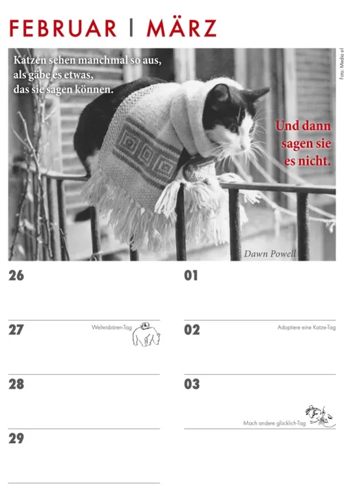 Der immerwa hrende Geburtstagskalender erscheint auf vielfachen Wunsch und ist der ideale jahresunabha ngige Begleiter des großen Katzenkalenders. Das Kalendarium bietet ausreichend Freiraum zum Notieren von Geburtstagen aller Familienmitglieder und Freunde. So mu ssen sie nicht von einem Jahr aufs na chste U bertragen werden.