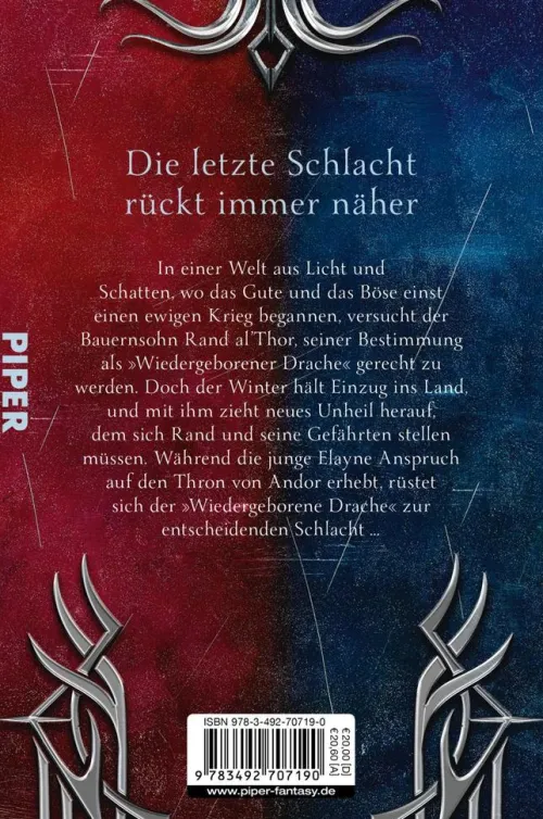 In einer Welt aus Licht und Schatten, wo das Gute und das Böse einst einen ewigen Krieg begannen, versucht Rand al’Thor, seiner Bestimmung als »Wiedergeborener Drache« gerecht zu werden. Doch der Winter kehrt zurück und legt sich kalt um Rands Herz. Während die junge Elayne Anspruch auf den Thron von Andor erhebt, wird die Situation für Mat in Ebou Dar durch die Invasion der Seanchaner immer brenzliger. Doch die Königin hat ihn zu ihrem Geliebten erwählt und weigert sich, ihn ziehen zu lassen . . .
