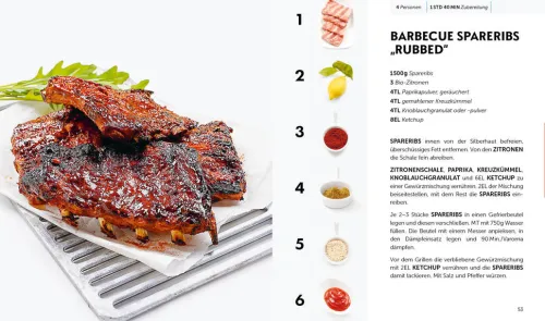 Mit maximal 6 Zutaten zaubert Autor Guido Schmelich 150 tolle Gerichte für jede Gelegenheit. Suppen, Salate, Soßen, Aufstriche, Pasta, Fisch- und Fleischgerichte und Desserts ganze Menüs können ohne großen Zeit- und Zutatenaufwand zubereitet werden. Überraschen Sie Ihre Lieben beim nächsten Familienessen doch einmal mit selbstgemachten Ravioli als Vorspeise, gefolgt von Lachs mit Safranreis und Zitronensoße und zum Abschluss einem Frozen-Joghurt-Törtchen. Durch das reduzierte und klare Layout mit Zutatenfotos und extragroßer Schriftgröße sind die Rezepte schnell erfassbar. So schnell und einfach war das Kochen mit der Thermo-Küchenmaschine noch nie!