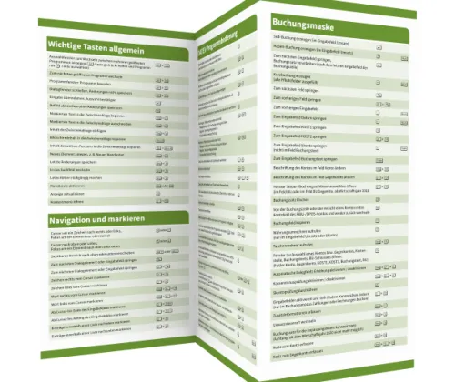 Egal ob in der Buchungsmaske, Buchungsansicht, Programmbedienung oder beim Navigieren – ab sofort haben Sie immer die richtige Tastenkombination in DATEV Rechnungswesen zur Hand! Auf 6 übersichtlich gestalteten Seiten finden Sie die praktischen Tastenkürzel auf einen Blick!