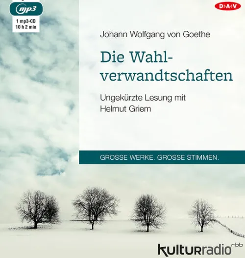 Eduard und Charlotte leben einträchtig und zurückgezogen auf ihrem Landgut und genießen ihr spätes Glück in zweiter Ehe. Doch als sie Eduards Freund, den in Not geratenen Hauptmann Otto, und Charlottes verwaiste Nichte Ottilie bei sich aufnehmen, wird ihre Beziehung auf die Probe gestellt. Die rational veranlagte Charlotte fühlt sich bald zum pragmatischen Hauptmann hingezogen, während der gefühlvolle Eduard dem Charme Ottilies erliegt. Was bei beiden als harmlose Schwärmerei beginnt, führt unweigerlich zur Katastrophe. Mit bestechender Klarheit und großem Einfühlungsvermögen führt Helmut Griem durch das fragile Beziehungsgeflecht zwischen Goethes Figuren. Ungekürzte Lesung mit Helmut Griem1 mp3-CD | ca. 10 h 2 min