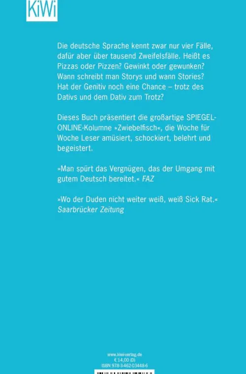 Versinken wir sprachlich gesehen nicht längst im Hagel der Apostrophe, wenn Känguru’s plötzlich in den Weiten Australien’s leben? Derlei Unsinn scheint nicht mehr aufhaltbar, wenn es nicht dieses Buch gäbe. Darauf zwei Espressis!