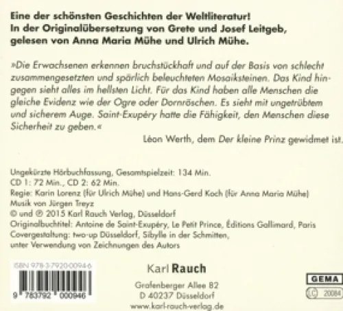 Der Kleine Prinz. 2 CDs*Rauch, Karl Verlag Clearance