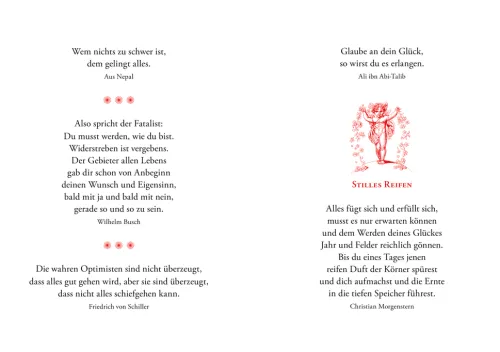 Der echte rote Faden ist das Markenzeichen dieser ausgefallenen Geschenkbuchreihe. Mit gepflegtem Design, edlem Papier und inspirierenden Gedichten und Gedanken ist dieses von Hand gebundene Buch ein liebevolles Geschenk, das zu vielen Anlässen Zuversicht und Lebensfreude überbringt.