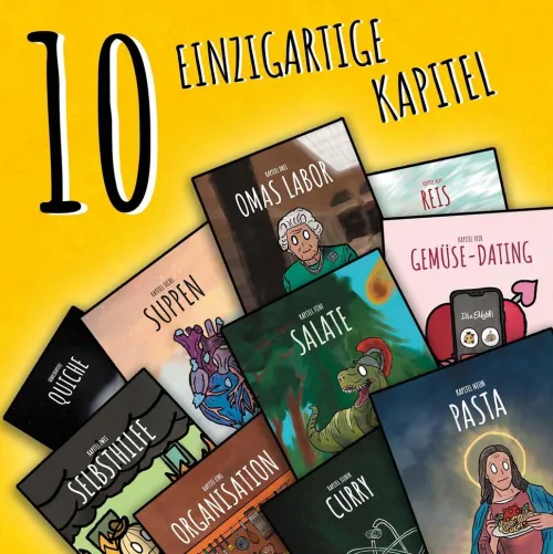 Mit viel Leichtigkeit hilft dir „Verzweifelt Kochen“ ganz beiläufig dabei, sowohl Lebensmittelverschwendung im eigenen Haushalt zu stoppen als auch vegetarische & vegane Rezepte zu zaubern, ohne dabei auf Geschmack oder Konsistenz zu verzichten. Und mit dem Kapitel „Gemüse-Dating“ werden deine Zutaten glücklicher als je zuvor.