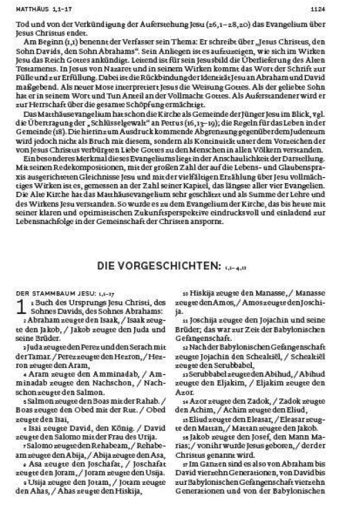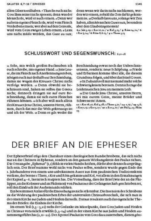 Ergänzt wird diese Ausgabe durch Einführungen in jedes biblische Buch, Zwischenüberschriften, Anmerkungen, Verweisstellen und einem Anhang mit Stichwort- und Personenregister, Zeittafel mit Sacherläuterungen und neun Karten.