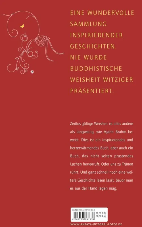 Schon Buddha unterwies seine Zuhörer mit Witz und Weisheit. Ajahn Brahm steht in der Tradition dieser orientalischen Erzählkunst. Geschickt verknüpft er die uralten Weisheiten mit modernen, lebensnahen Themen. Mit viel Humor und Einfühlungsvermögen unterhält er seine Leser – und eröffnet auf ganz unaufdringliche Weise neue Wege zu einem glücklichen und erfüllten Leben.