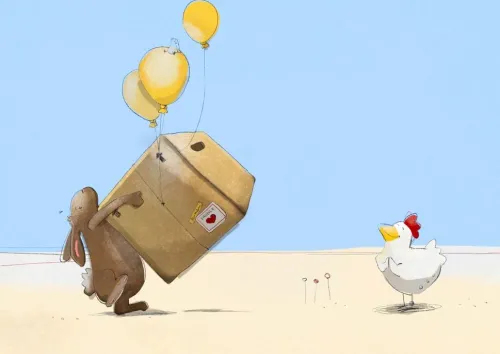 Das Huhn freut sich sehr, als der Hase ihm zum Geburtstag einen riesengroßen Karton überreicht. Doch anstelle des erwarteten supertollen Geschenks ist nichts in der Kiste! Der Hase erklärt dem verdutzten Geburtstagskind, was sie mit so einem leeren Karton alles spielen können. . .