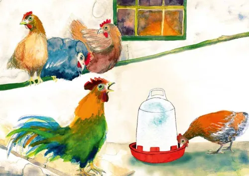 Wie sieht eigentlich der Alltag eines Huhns aus? Wie viel Zeit brauchen Hühner, um Eier zu legen, wann stehen sie auf und welche Rolle spielt der Hahn in einer Hühnerschar? Wozu baden Hühner im Sand und was fressen sie gerne, außer den Körnern, die ihnen die Bäuerin hinstreut?