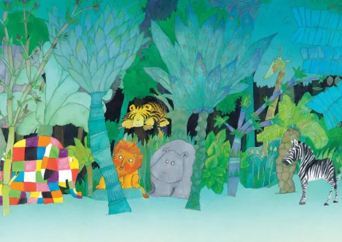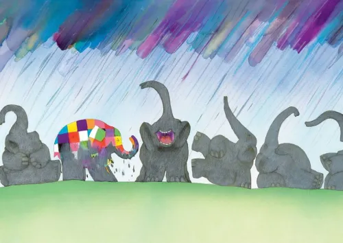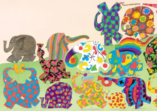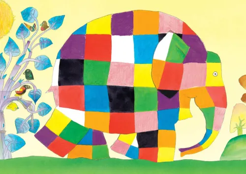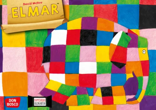 Elmar ist kein gewöhnlicher Elefant: Statt grau ist er bunt kariert. Normalerweise macht ihm das nichts aus. Aber eines Abends kommt er auf die Idee, so sein zu wollen wie alle anderen Elefanten. Auf den Bildkarten für das Kamishibai können Kinder leicht mitverfolgen, wie der kunterbunte Elefant versucht, sich anzupassen. Er wälzt sich in grauen Beeren, kann sich aber doch nicht in der Herde verstecken und bekommt schließlich für sein besonderes Anderssein sogar einen eigenen Elmar-Tag!