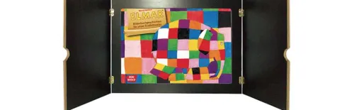 - Ein fulminantes Farb-Erlebnis: die Bilder von Elmar, dem karierten Elefanten, wirken im Kamishibai noch prächtiger