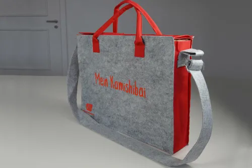- Schick und leicht: Filztasche mit verstärktem Boden und rotem Seitenteil