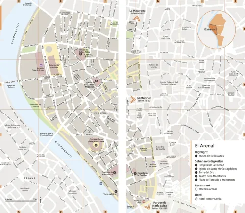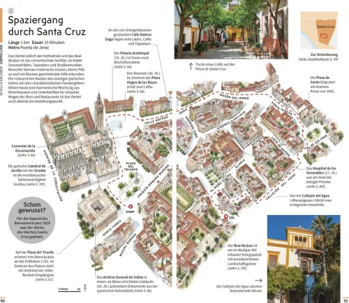 – Handgezeichnete 3-D-Aufrisszeichnungen: Absolute Highlights eröffnen die Stadtteilkapitel. Das Besondere: Statt sie nur zu beschreiben, werden sie in diesem Vis-à-Vis-Reiseführer großzügig in Szene gesetzt – mit sensationellen 3-D-Aufrisszeichnungen, die jedes Detail aus der Vogelperspektive zeigen. Sie bieten ganz neue und einmalige Einblicke in die Sehenswürdigkeiten Sevillas und Andalusiens – von der Kathedrale und dem Glockenturm La Giralda in Sevilla bis zu Granadas Alhambra.