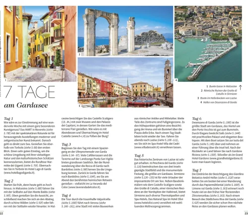 Zwischen Sandstränden und schroffen Bergwelten wandern, die mächtigen Burgen am Seeufer bestaunen oder eine Oper in der Arena von Verona besuchen: Lassen Sie sich vom Vis-à-Vis Reiseführer Gardasee zu den wichtigsten Sehenswürdigkeiten und beeindruckendsten Orten der Region führen. Mit fundiertem Expertenwissen, inspirierenden Fotos und detaillierten Karten stellt Ihnen der übersichtliche Reiseführer die schönsten Gegenden, Städte und Ausflugsziele rund um den Gardasee mit allen Attraktionen vor – vom nördlichen Gardasee mit seinen steil aufragenden Berghängen und Wander- und Outdoor-Paradiesen bis zu den sanften Hügeln mit Weinbergen und Olivenhainen im lieblichen Süden. Ob für ein Wochenende, eine Woche oder länger – hier finden Sie passende Reiserouten und Empfehlungen für Aktivitäten, Restaurants und Hotels, um das Beste aus Ihrem Gardasee-Urlaub herauszuholen!
