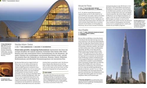 – Über 350 verschiedene Bauwerke werden in bildreichen Profilen detailliert beschrieben – von der Entstehung über die Bauweise bis zu den Baumaterialien.