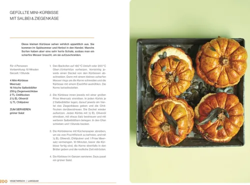 – Entspannte Feierabendküche: von gefüllten Mini-Kürbissen mit Salbei & Ziegenkäse über Ofen-Shakshuka bis hin zu Thai-Curry mit Süßkartoffeln