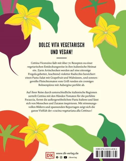 Mit ihrer Fülle an Gemüse, Hülsenfrüchten und Teig-Variationen bietet die italienische Küche ein breites vegetarisches Kochspektrum wie kaum eine andere Küche. Ob Fregola mit Zitronen-Parmesan-Artischocken, Pasta-Salat mit Radicchio und Pomelo oder Esskastaniensuppe mit Weizenkörnern: In diesem gemüsereichen Kochbuch widmet sich die preisgekrönte Autorin Cettina Vicenzino der vegetarisch-italienischen Küche in all ihren Facetten. Dafür besuchte sie unterschiedliche Regionen Italiens, traf Gemüsebauern, Produzent*innen und Menschen, die die Liebe zu gutem Essen verbindet und entwickelte so über 70 wunderbare italienische und gleichzeitig vegetarische Rezepte – alle speziell für dieses Buch.
