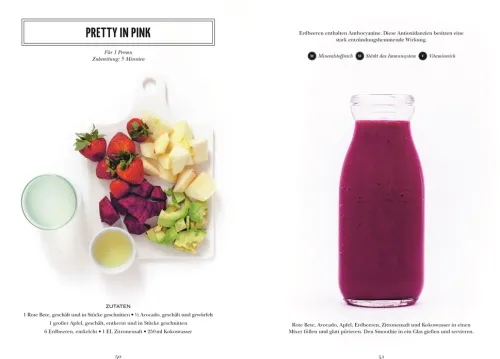 – Über 65 gesunde & abwechslungsreiche Smoothie-Rezepte ganz ohne tierische Inhaltsstoffe – von nährstoffreichen Obst-Gemüse-Mischungen wie Banane & Brokkoli bis zu extravaganten Kombinationen wie Bohnen-Goji