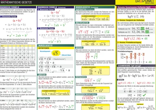 Diese Info-Tafel gibt einen Abriss über die wichtigsten Rechengesetze – übersichtlich, klar und mit Beispielen versehen. Durch die wasserfeste Laminierung ist die Tafel dabei robust und hält allen Bedingungen stand.