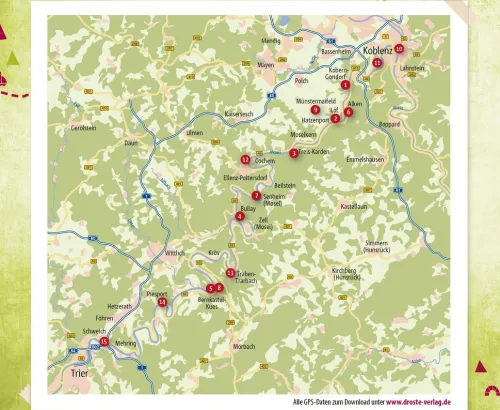Radtouren an der Mosel sind erholsame Mini-Urlaube: das glitzernde Wasser des Flusses, die weiten Ausblicke ins Tal, imposante Burgen und pittoreske Dörfer. Vorbei am römischen Weinschiff und dem steilsten Weinberg geht es ins idyllische Schrumpfbachtal und zur Burg Eltz. Überall laden urige Straußwirtschaften und kuschelige Cafés zu einer herrlichen Pause ein. Ob genüsslich oder sportlich – an der Mosel schlägt jedes Radelherz höher! Mit Tipps zur entspannten An- und Abreise, genussvollen Einkehr und zu Sehenswertem am Wegesrand wird ein Rundum-sorglos-Paket daraus. Die Buchreihe „Radeln für die Seele“ lädt dazu ein, den Alltag hinter sich zu lassen und auf dem Fahrrad zur Ruhe zu kommen. Ob entlang malerischer Strecken, durch idyllische Landschaften oder vorbei an genussvollen Highlights – hier wird der Weg selbst zum Ziel. Jede Tour ist sorgfältig ausgewählt und verspricht entspannte Erlebnisse voller Natur, Kultur und regionalem Charme.