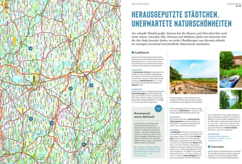 Der DUMONT Bildatlas ist der perfekte Begleiter für alle, die auf ihrer Reise durch Europas größtes geschlossenes Seengebiet Neues ausprobieren und das Besondere erleben wollen. Die fünf Kapitel führen Sie mit eindrucksvollen Fotos, spannenden Reportagen und vielen Reisetipps über die Mecklenburger Seenplatte. Am Ende jedes Abschnitts werden die Top-Sehenswürdigkeiten und Aktivitäten übersichtlich zusammengefasst, sodass Sie ganz einfach das Beste für sich auswählen können. Die übersichtlichen Karten, in denen alle Ziele verzeichnet sind, sorgen beim Schmökern und auch vor Ort für schnelle Orientierung. Alle wichtigen Informationen für die Vorbereitung finden Sie im abschließenden Servicekapitel. So planen Sie Ihre Reise ganz entspannt und finden die schönsten Ziele von Schwerin bis Neubrandenburg!