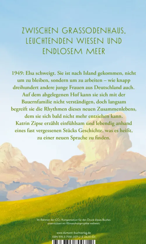 Als Elsa im Sommer 1949 in Island ankommt, ist sie eine von vielen. Knapp dreihundert junge Frauen aus Deutschland sind dem Aufruf der isländischen Bauernpartei gefolgt, um dort ein Jahr auf Höfen zu arbeiten. Die Bauern hoffen auf Arbeitskräfte sowie Heiratskandidatinnen, nachdem viele Isländerinnen in die Städte abgewandert sind. Sprachkenntnisse können die Frauen nicht vorweisen, aber oft haben sie nichts zu verlieren. Auch Elsa schweigt. Sie ist nicht hier, um zu bleiben, sie trauert um ihre Freundin Sola, und mit den Bauersleuten kann sie sich zunächst ohnehin nicht verständigen. Dennoch entsteht zwischen Grassodenhaus, leuchtenden Wiesen und endlosem Meer ein Zusammenleben, das sich Elsa irgendwann nicht mehr vom Leibe halten kann. Allein ihre Anwesenheit verändert die Dynamik auf dem Hof – besonders die der Bauernsöhne. Es gibt Erwartungen, ausgesprochene und unausgesprochene. Und dann ist da auch noch die verschwundene Tochter der Familie, über die niemand spricht und die für Elsa immer wichtiger wird . . . Katrin Zipse erzählt einfühlsam und lebendig anhand eines fast vergessenen Stücks Geschichte, was es heißt, zu einer neuen Sprache zu finden.