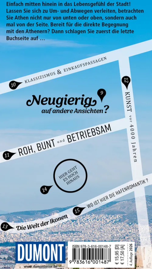 Mit den 15 »Direkt- Kapiteln« des Reiseführers von Klaus Bötig und Elisa Hübel können Sie sich zwanglos unter die Athener mischen, direkt in das Stadtleben eintauchen und die Highlights und Hotspots kennenlernen: