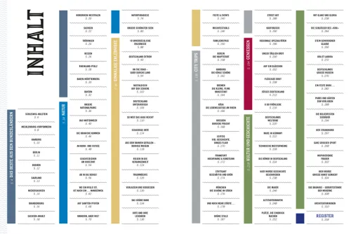 So ziemlich alles, was Deutschland attraktiv macht, ist in diesem Buch versammelt: die charmantesten Städte zwischen Flensburg und Garmisch-Partenkirchen, die schönsten Landschaften von der Ostsee bis zu den Alpen, Kultur zum Staunen und Mitmachen, liebenswerte Traditionen und vieles mehr. Egal wo es dich hinzieht – in diesem Buch findest du Anregungen für den nächsten Ausflug, für einen kurzweiligen Städtetrip oder für eine Auszeit auf dem Land. Oder einfach zu einer Sehenswürdigkeit um die Ecke, die du noch nicht kennst. Einfach reinblättern und sich überraschen lassen von der erfrischenden Kombination aus Lesevergnügen und Augenschmaus. Lust bekommen auf einen Ausflug in die eigene Heimat? Dann nichts wie los!