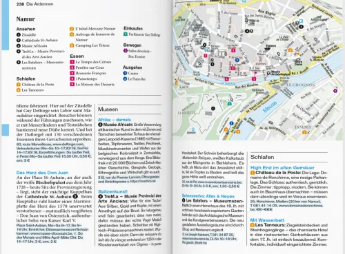 - Die Karten: 7 Citypläne, 16 Tourenkarten, Übersichtskarte mit den Highlights in Belgien, Schnellüberblick zu jeder Region plus eine große Reisekarte