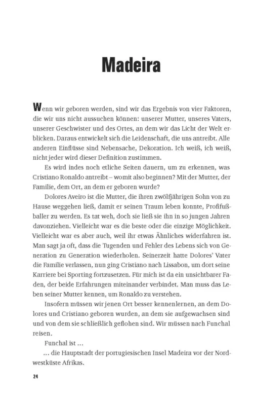 Der preisgekrönte Autor Guillem Balagué zeichnet Ronaldos Lebensweg meisterhaft nach, von der Ausbildung unter Alex Ferguson, dem Aufstieg zum Weltfußballer in England und Spanien, dem Gewinn der Europameisterschaft mit Portugal bis zu seinem Rekordtransfer nach Saudi-Arabien. Er zeigt das Bild eines Ausnahmetalents und akribischen Arbeiters, dessen Trainingsmethoden für Aufsehen sorgten und der zum Idol für eine ganze Generation wurde. Dabei stützt der Autor sich auf erstklassige Quellen, Interviews mit zahlreichen Wegbegleitern und einen exklusiven Zugang zu Ronaldos persönlichem Umfeld.