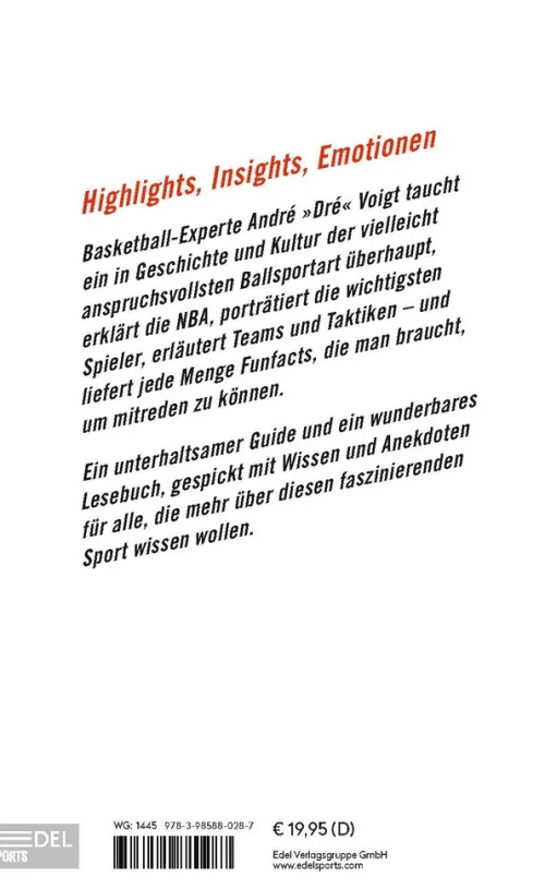 Für viele gibt es keinen faszinierenderen und trendigeren Sport als Basketball. Weltweit verfolgen Millionen von Fans die Spiele der amerikanischen Liga NBA, die heimischen Bundesliga-Arenen sind regelmäßig ausverkauft und immer mehr Jugendliche begeistern sich für das Spiel unter dem Korb. Pünktlich zur Europameisterschaft in Deutschland holt der renommierte TV-Experte und Journalist André Voigt mit seinem Buch alle Basketball-Liebhaber ab. Er taucht ein in die Geschichte und die Kultur dieser technisch anspruchsvollen und hochspannenden Ballsportart, erklärt die NBA, die wichtigsten Spieler, Teams und Taktiken – und liefert dabei jede Menge Fun Facts, die man braucht, um mitreden zu können. Ein unterhaltsamer Guide und ein wunderbares Lesebuch, gespickt mit Wissen und Anekdoten für die Basketball-Community und alle, die dazugehören wollen.