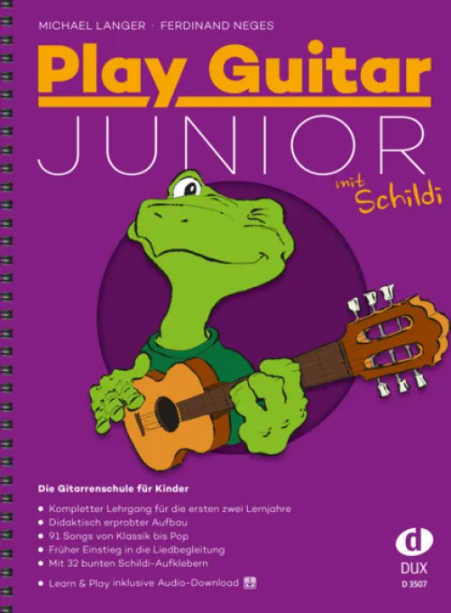 Play Guitar Junior ist der ideale Einstieg in den frühen Unterricht. Im Anschluss bietet sich der bekannte und beliebte Lehrgang Play Guitar Band 2 an. Für den Gruppenunterricht gibt es Play Guitar Together.