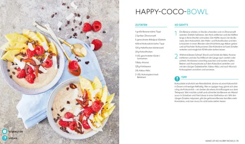Die über 50 Rezepte bieten eine bunte abwechslungsreiche Mischung an Frühstücks-Bowls, warmen und kalten Bowls. Sowohl Fleischliebhaber als auch Vegetarier und Veganer kommen auf ihre Kosten. Happy Coco-Bowl, Knusper-Kichererbsen-Bowl, Kahyalti-Bowl und Saté-Style-Tofu-Brokkoli-Bowl sind nur eine kleine Auswahl der köstlichen Gerichte. Auch Poke Bowls, der Foodtrend aus Hawaii, wird in 8 köstlichen Rezepten präsentiert.