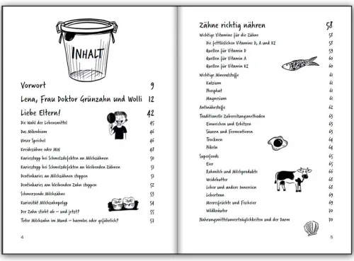 Zähneputzen, klar, das lernt Lena nochmal ganz genau nach dem KAI-Schema. Doch mindestens genauso wichtig sind eine zahngesunde Ernährung und ein gut gefütterter Darm , denn ein gesunder Darm kann kranke Zähne heilen und Karies stoppen . Wie gut, dass sich Frau Doktor Grünzahn damit richtig gut auskennt und Lena und ihre Mama mit viel Wissen und leckeren Rezepten versorgt! So erfahren beide, was starke Zähne brauchen, damit Karies keine Chance mehr hat.