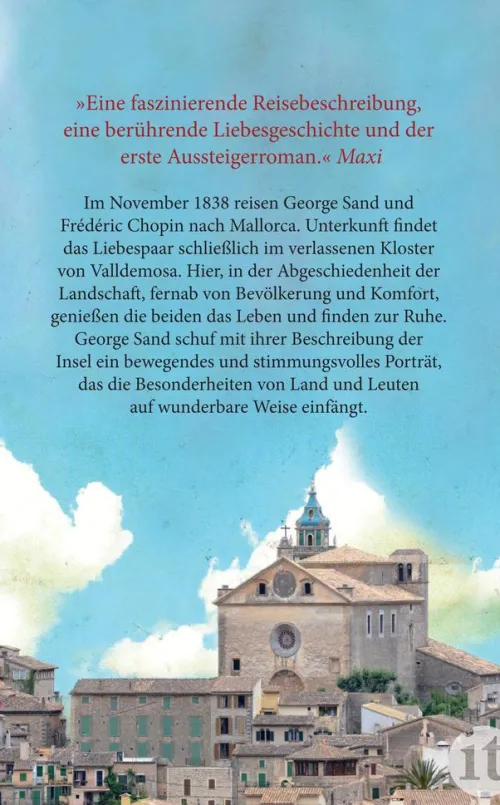 Im November 1838 reisen George Sand und Frédéric Chopin nach Mallorca. Erst nach längerer Suche findet das Liebespaar Unterkunft – im verlassenen Kloster von Valldemosa. Hier, in der Abgeschiedenheit der Landschaft, fernab von Bevölkerung und Komfort, genießen die beiden das Leben und finden zur Ruhe. George Sands Beschreibung ihrer Erfahrungen und Eindrücke von der Insel ist ein bewegendes und stimmungsvolles Porträt, das die Besonderheiten von Land und Leuten auf wunderbare Weise einfängt.
