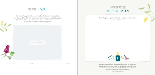 Das Album mit hochwertigem Stoffeinband ist mit Folienprägung und einem goldenen Buchschnitt veredelt. Die 48 Seiten mit zauberhaft-poetischen Illustrationen bieten viele Anregungen zum Eintragen und Platz zum Bebildern. Eine Sammeltasche hinten im Album bewahrt besondere Erinnerungen. So wird das Kommunionfest unvergesslich!