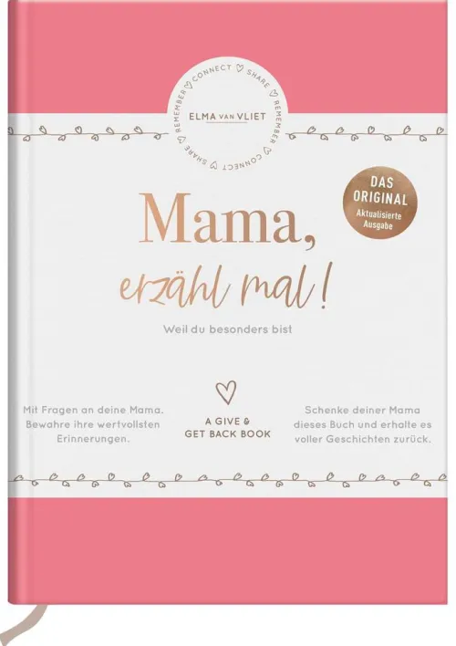 „Mama, erzähl mal!“ ist ein liebevolles und persönliches Geschenk für jede Mutter. Sie erhält die Gelegenheit, angeleitet durch Fragen das Wichtigste über ihre Kindheit, ihr weiteres Leben, ihre Person und ihre Sicht auf die Welt aufzuschreiben. Ausgefüllt wird das Buch zu einem wertvollen Erinnerungsalbum für die ganze Familie, das die Mutter eines Tages der/dem Schenkenden zurückgeben kann. So werden alle ihre Erinnerungen für alle Zeit bewahrt.