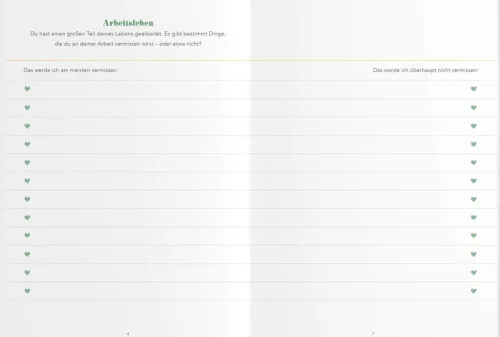 - Mit vielen Inspirationen, Listen und Fragen zur Vorbereitung auf den Renteneintritt