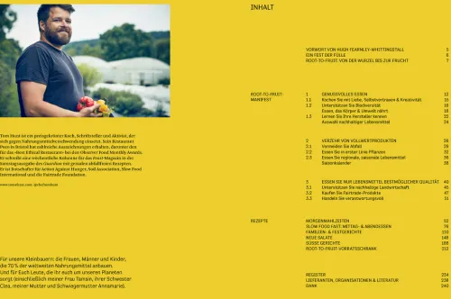 verschwendung. Tom Hunt deckt unter Bezugnahme auf die neuesten Forschungsergebnisse und Richtlinien im ersten Teil detailliert die Problematik auf und bietet gleichzeitig umsetzbare Lösungen an. In seinem »Root-to-Fruit-Konzept« geht es darum, mit Genuss und Kreativität vegetarisch, saisonal und lokal zu kochen, nachhaltigere Landwirtschaft zu fördern, die Artenvielfalt zu unterstützen und keinen Abfall zu produzieren.