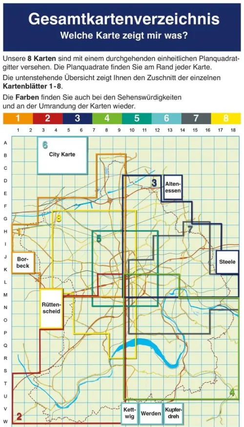 Sehenswürdigkeiten, Kartencover und Kartenränder sind mit 8 einheitlichen Farben versehen und ermöglichen schnelle Orientierung.