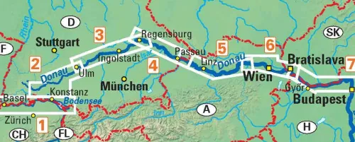 7 Fahrradkarten in einem Set / Cycle Map Set (7 Maps) 1:100 000Von Basel bis Budapest