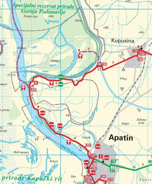 Natürlich finden Sie auch weitere nützliche Informationen entlang der Route wie zum Beispiel Übernachtungsmöglichkeiten, Sehenswürdigkeiten, Fahrradreparaturwerkstätten oder Stadtplanausschnitte größerer Orte.