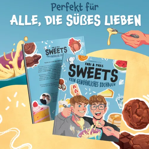 Tauche ein in die verführerisch süße Welt von Fabian und Philipp Strehlow – besser bekannt als @fabiundphil, die mit ihren kreativen Ideen die Social-Media-Welt begeistern. Ihr neues Buch bringt dir jetzt nicht nur die beliebtesten Rezepte der beiden direkt nach Hause, sondern auch jede Menge Inspiration und praktische Tipps, die das Backen zu einem echten Erlebnis machen. Vom fluffigsten Hefeteig bis zur buntesten Smoothie-Bowl – hier findest du die perfekte Mischung aus klassischen Lieblingsrezepten und kreativen Neuinterpretationen, die garantiert jedes Dessert-Herz höherschlagen lassen. Doch das ist erst der Anfang! Mit Fabi und Phil gelingt dir garantiert jedes Rezept:Backen leicht gemacht: Entdecke Grundlagen, hilfreiche Techniken und das Geheimnis der besten Zutaten, um deine Backkünste auf das nächste Level zu bringen. Süß und überraschend: Verliebe dich in luftigen Kaiserschmarrn, zarte Schokotorten oder sommerliche Dessertträume, die mehr als nur lecker sind. Für jeden Anlass: Frühstück, Festtag oder einfach der kleine Genussmoment zwischendurch – mit Fabis und Phils Rezepten bist du immer bestens vorbereitet. Dieses Buch ist mehr als nur eine Rezeptsammlung – es ist eine Einladung, gemeinsam zu backen, zu genießen und neue Lieblingsrezepte zu entdecken. Egal, ob du Backanfänger oder erfahrener Hobby-Bäcker bist: Fabi und Phil begleiten dich Schritt für Schritt und zeigen, dass jeder mit ein wenig Kreativität und Spaß Meisterwerke zaubern kann.“Fabi & Phil – Sweets“ ist das Must-have für alle, die Süßes lieben und Lust auf neue Geschmackserlebnisse haben. Lass dich inspirieren und entdecke die Freude am Backen neu – mit zwei sympathischen Creatorn, die genau wissen, wie sie deine Küche verzaubern.