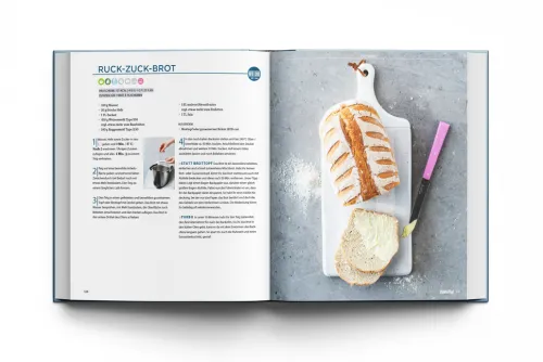 Du liebst den Duft von frischem Brot? Du möchtest deine Küche in eine Backstube verwandeln und hausgebackene Brote wie vom Bäcker zaubern? Mit krosser Kruste und saftiger Krume? Das gelingt mit deinem Thermomix® wirklich leicht, wenn du seine Funktionen voll ausschöpfst um Mehl selbst zu mahlen, schwerer Teige zu kneten und Rustikales mit oder ohne Sauerteig anzusetzen. Das Backbuch „Brot backen. Wie vom Bäcker mit dem Thermomix®“ aus der beliebten Reihe „mein ZauberTopf mixt!“ verrät dir alle wichtigen Geheimnisse der Bäckermeister-Zunft, die du brauchst, um mit dem Thermomix® herrliche Laibe zu backen. Denn so brauchst du keine fertigen Brote mehr zu kaufen, deren Zutatenlisten voller Zusatzstoffe sind und die immer gleich schmecken. Du wirst vom einfachen 3-Zutaten-Brot über das knusprige Sonntagsbrötchen bis zum Sauerteigbrot mit langer Teigführung alles selbst herstellen können, was du liebst. Mit dabei sind auch Brote ohne Warten, kräftige, dunkle Schwarz- und Körnerbrote sowie luftige Weißbrote. In den Ratgebern erfährst du die geheimen Tricks zu den gängigen Triebmitteln, was du tun kannst, wenn du kein Mehl im Haus hast und wie du dein Brot wirklich lange lagern kannst. Zudem erläutert das große Lexikon der Bäckermeister alle wichtigen Handgriffe vom Rundwirken bis zum Falten mit lückenlosen Schritt-für-Schritt-Bildern. Dabei wirst du sehen, wie einfach der Thermomix® mit seiner durchführt. Das Backbuch enthält über 100 Rezepte zum Brotbacken. Darüber hinaus bekommst du hunderte wertvolle Tipps, welches Zubehör du zum Brotbacken wirklich brauchst und wie dir damit alle Gebäcke wie vom Profi gelingen. Backe ab jetzt Gesundes und Leckeres mit Dinkel, Urkorn, Roggen, Weizen oder Hafer und lerne die Vorzüge von Hefe- und Sauerteig kennen. Heiz schon mal den Backofen vor, und werde zum Brotexperten.